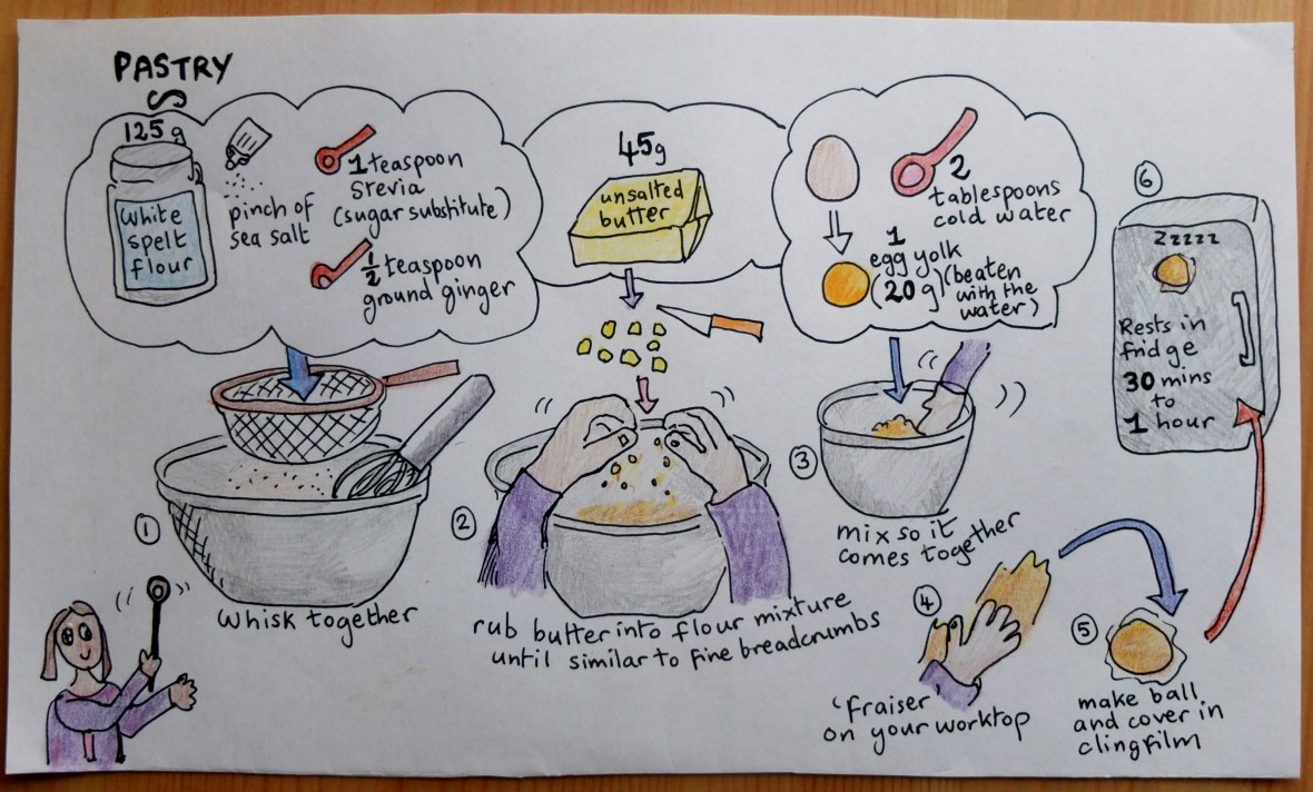 Raspberry, goats’ cheese and fig pavlova topping illustrated recipe