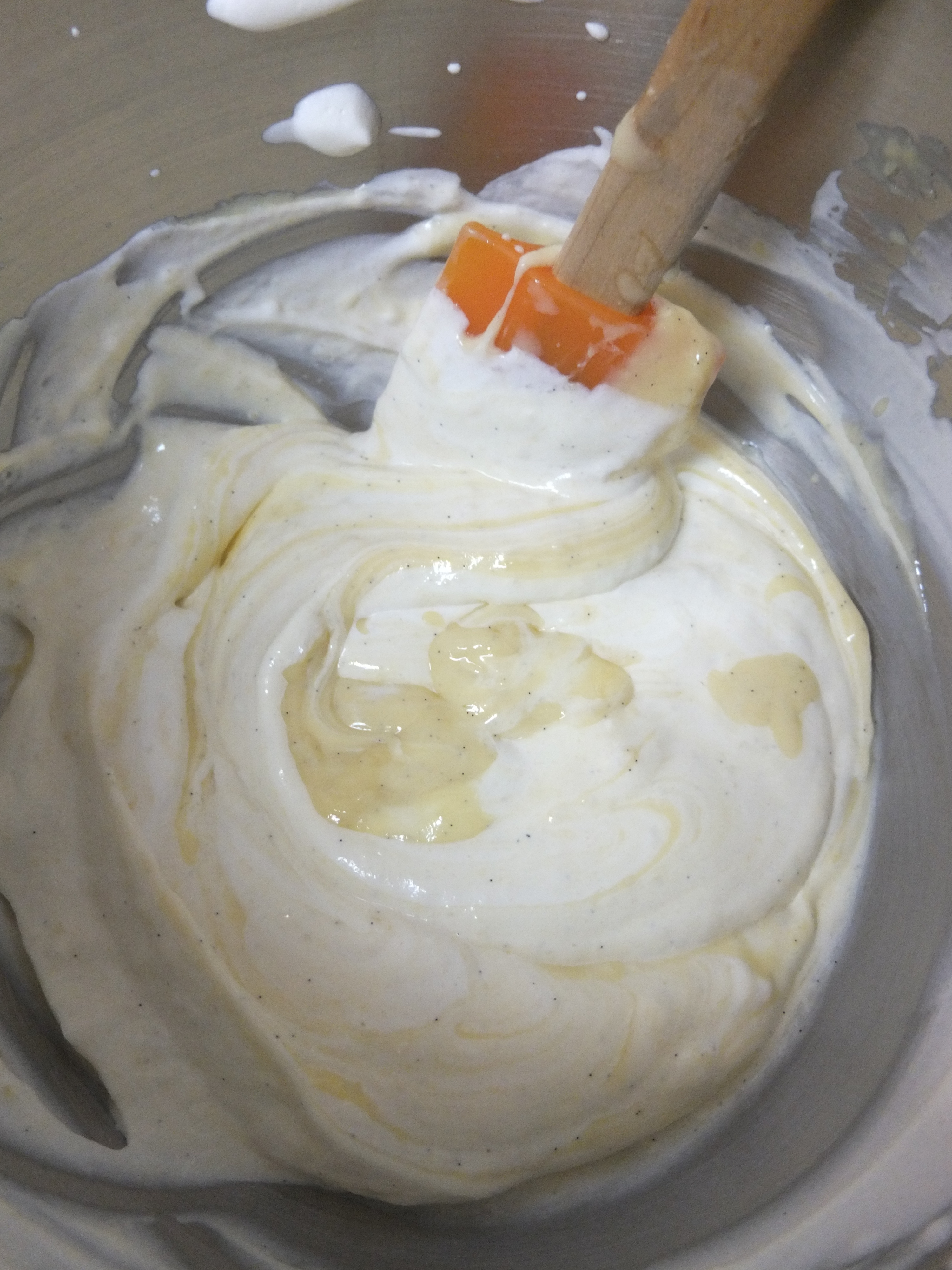 And there’s your bavaroise! Hurray! 🙂 You’ll want to assemble the cake now, because you don’t want that bavarian cream to start setting before it goes in.