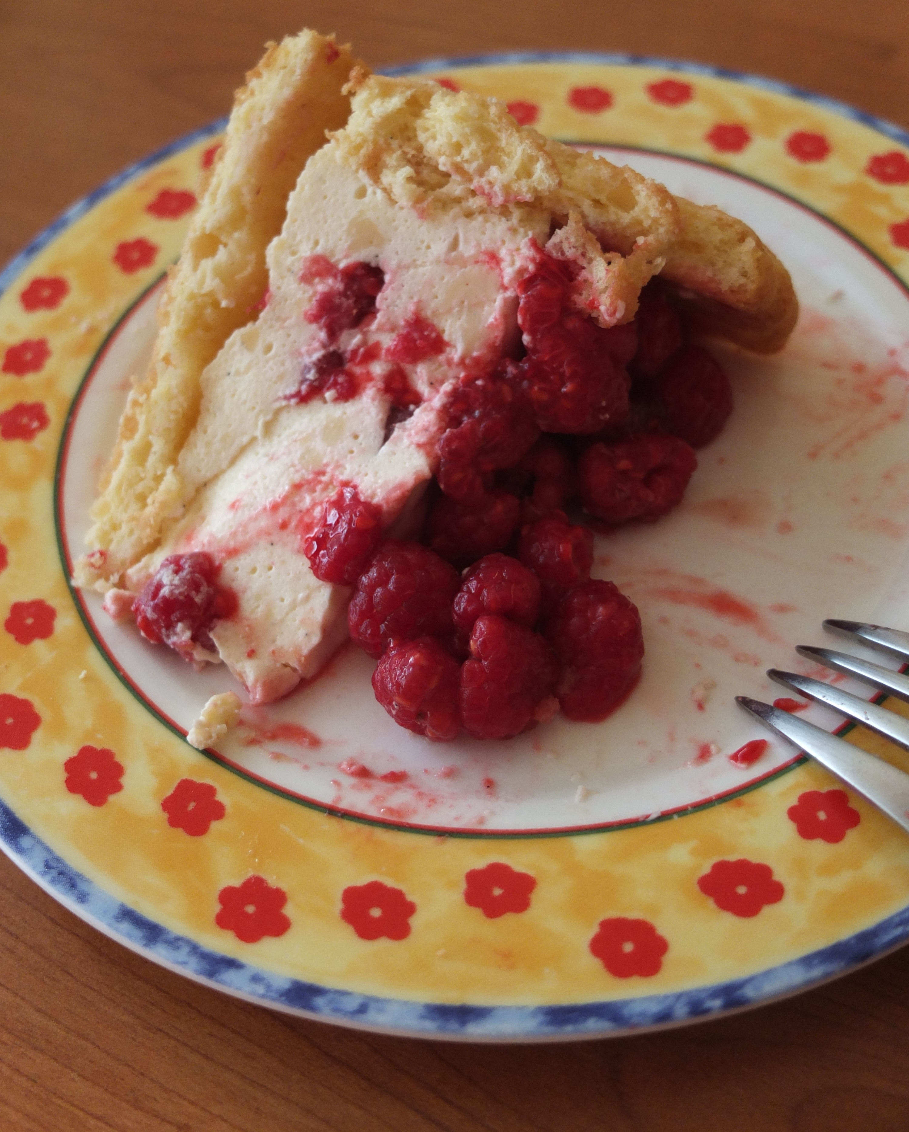I’ve changed the quantities so you’ll be putting more raspberries inside with the bavaroise (again, as I did last year when I kind of went off piste from the recipe!) rather than a great majority on top. It’s still a great cake, but look at last year’s on my header and how nice it is to have loads of raspberries inside! You could even add 100 to 200g of raspberries to the recipe and up your vitamin intake! 🙂