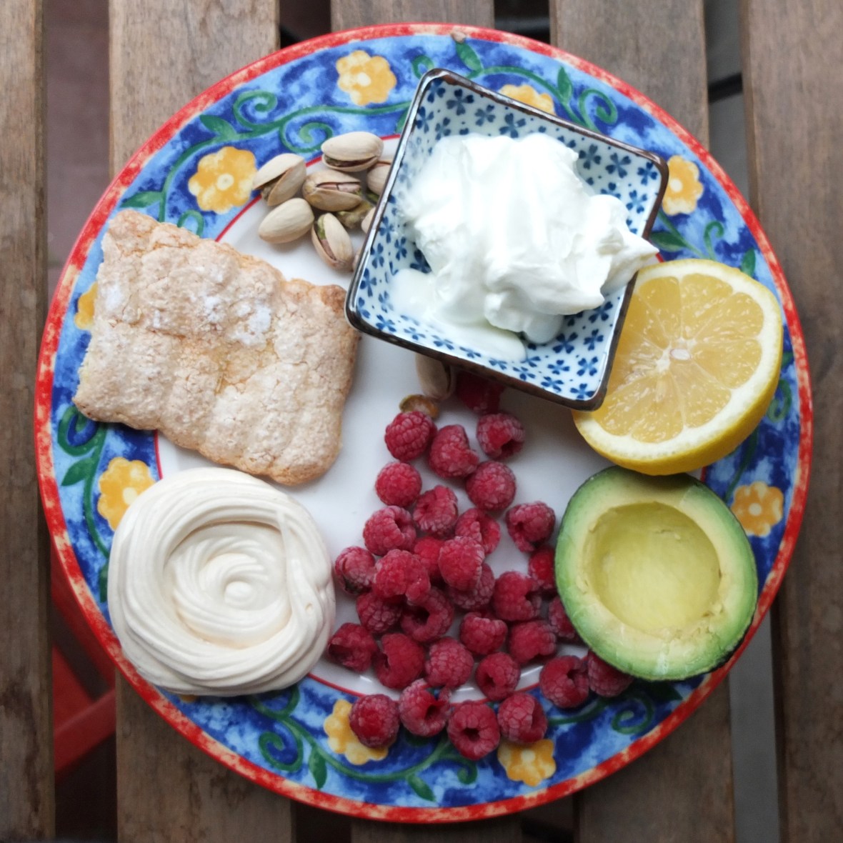 Raspberry, goats’ cheese and fig pavlova topping illustrated recipe