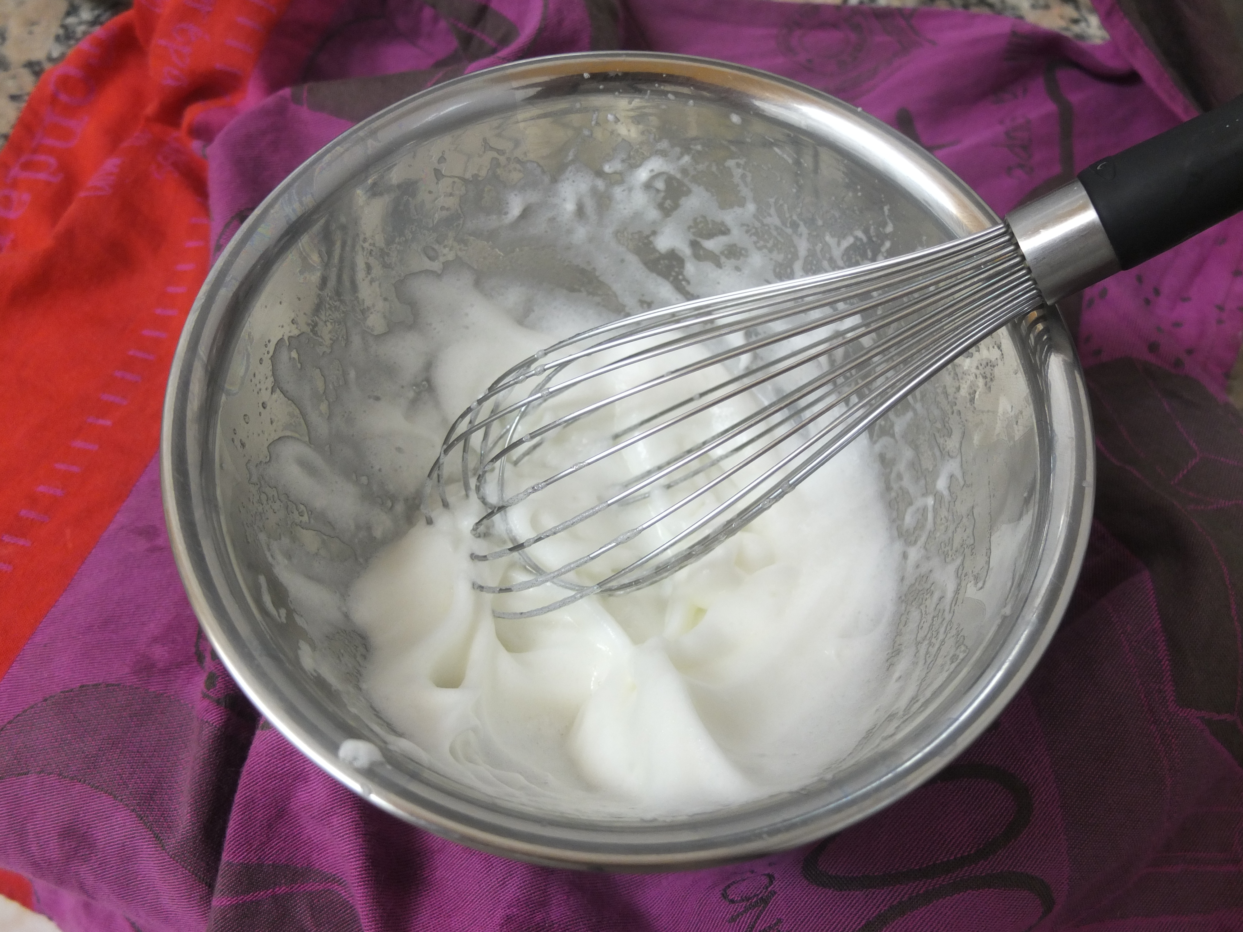 - Whisk the egg whites till firm with a hand whisk or other kind of whisk.