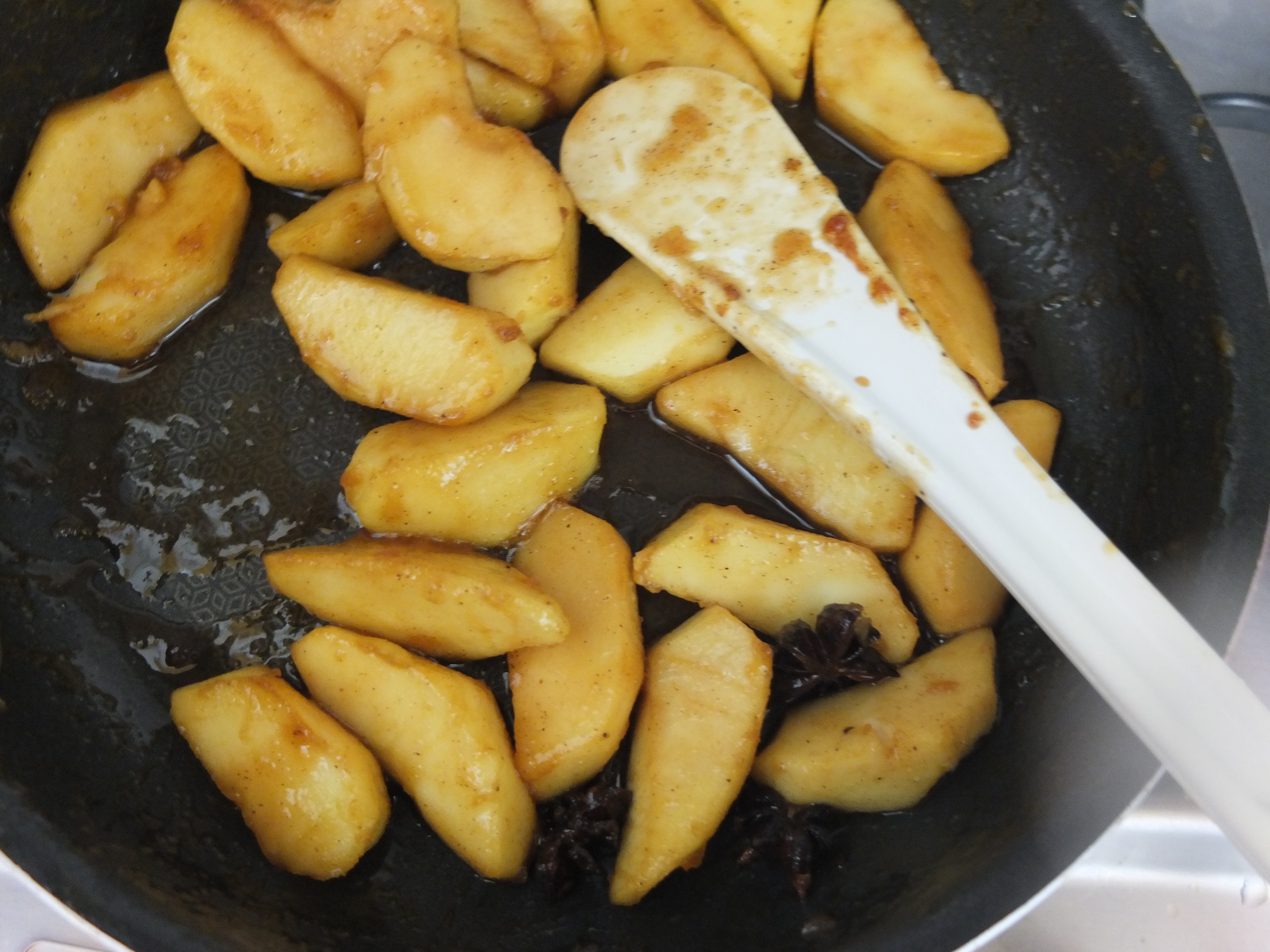 - Now add the apple slices and turn them in the caramel till coated. Cook on low to medium heat for 10 minutes until the slices have softened a little but not too much.