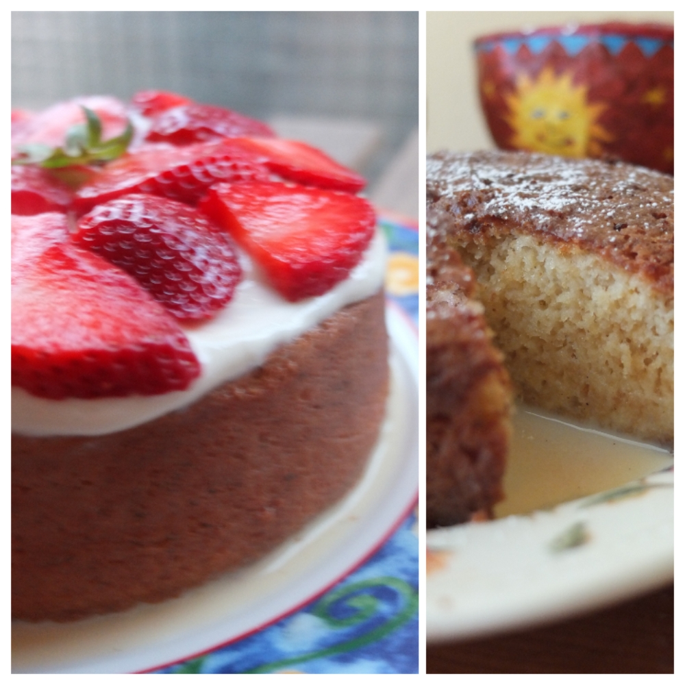 Here’s a peek at my efforts so far to make a tres leches cake (for an adaptated recipe in grams – for you!).  They don’t taste as good as the chef’s but I’m working on it! 🙂