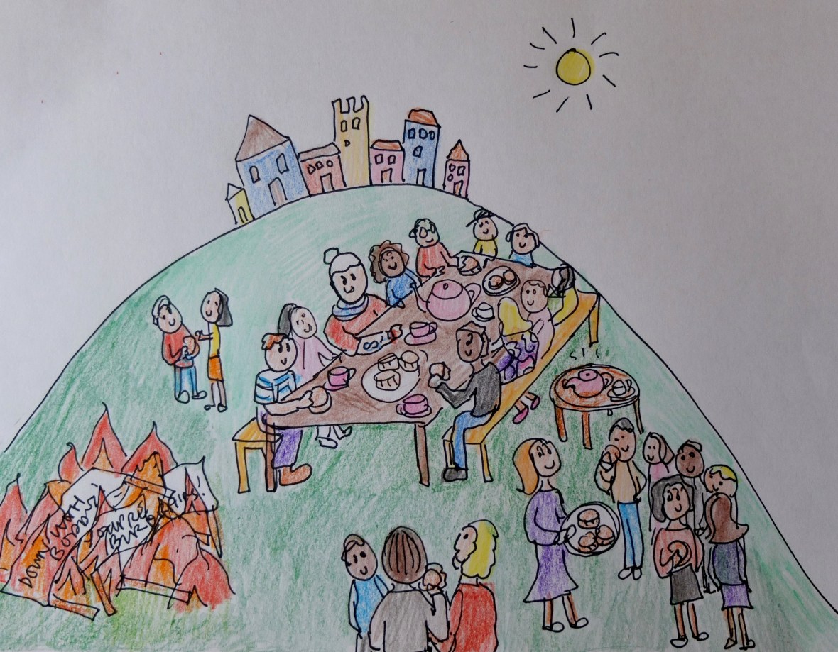 Raspberry, goats’ cheese and fig pavlova topping illustrated recipe
