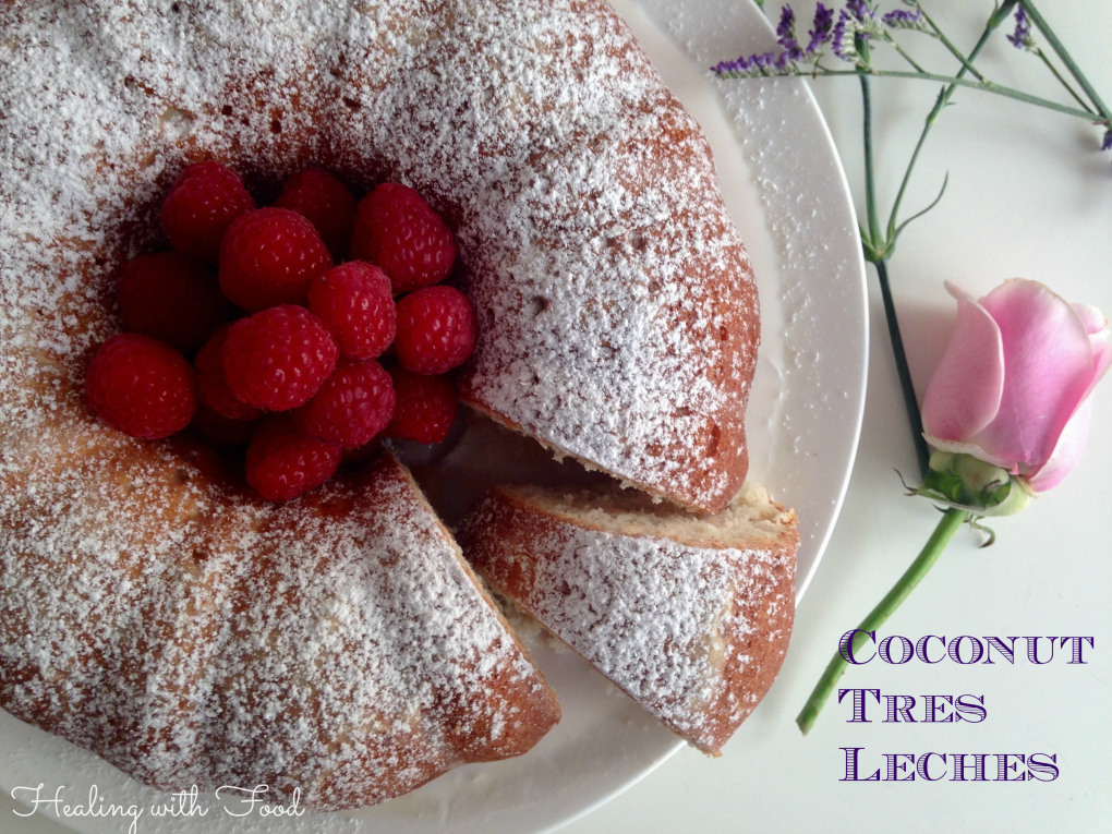 Now here’s the link and photo for a very exciting ALLERGY-FRIENDLY COCONUT TRES LECHES CAKE from NINA of Healing with Food. It’s beautiful and the raspberries will go really well with it!