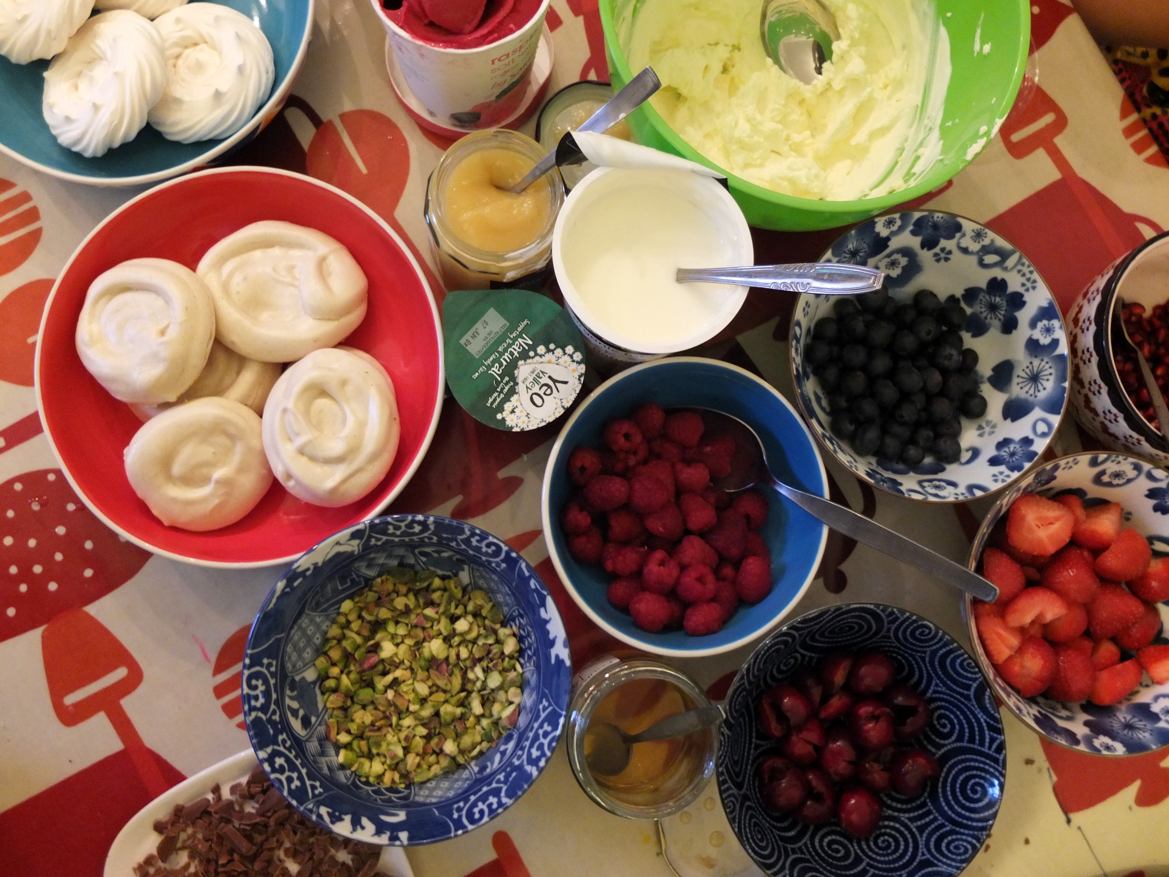Raspberry, goats’ cheese and fig pavlova topping illustrated recipe