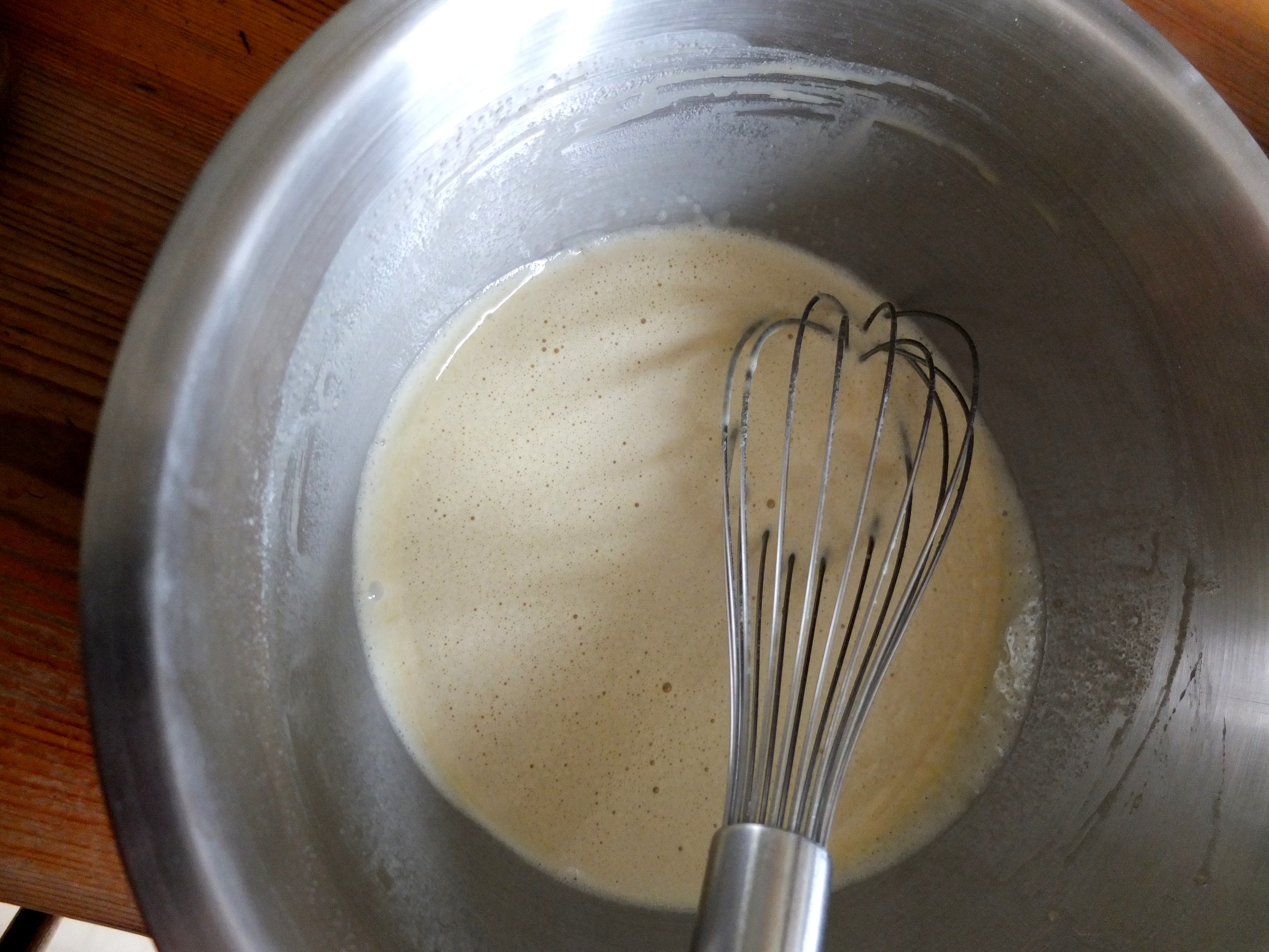 Whisk the eggs, cream, sugar, flour and crème de cassis liqueur together till smooth.