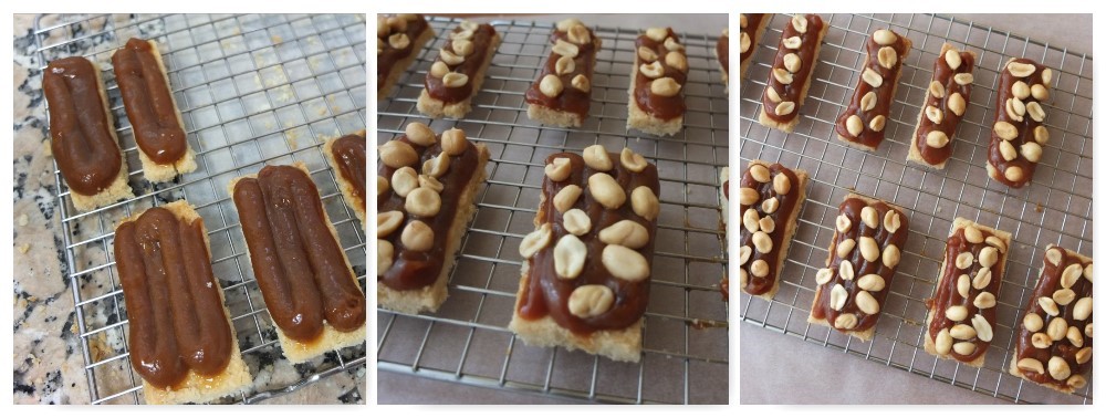 Piping caramel and peanuts