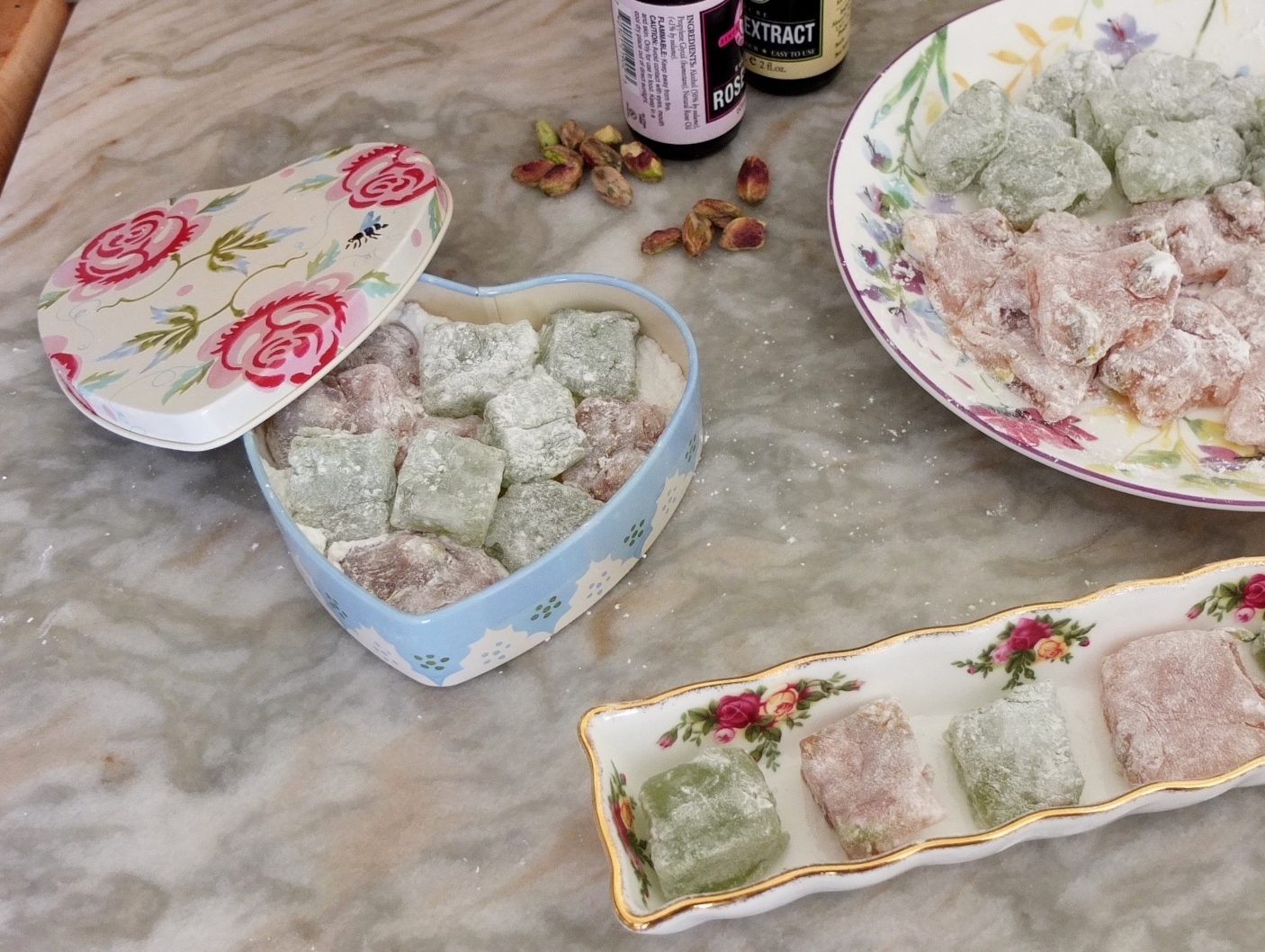 Making almond paste (marzipan) roses and leaves