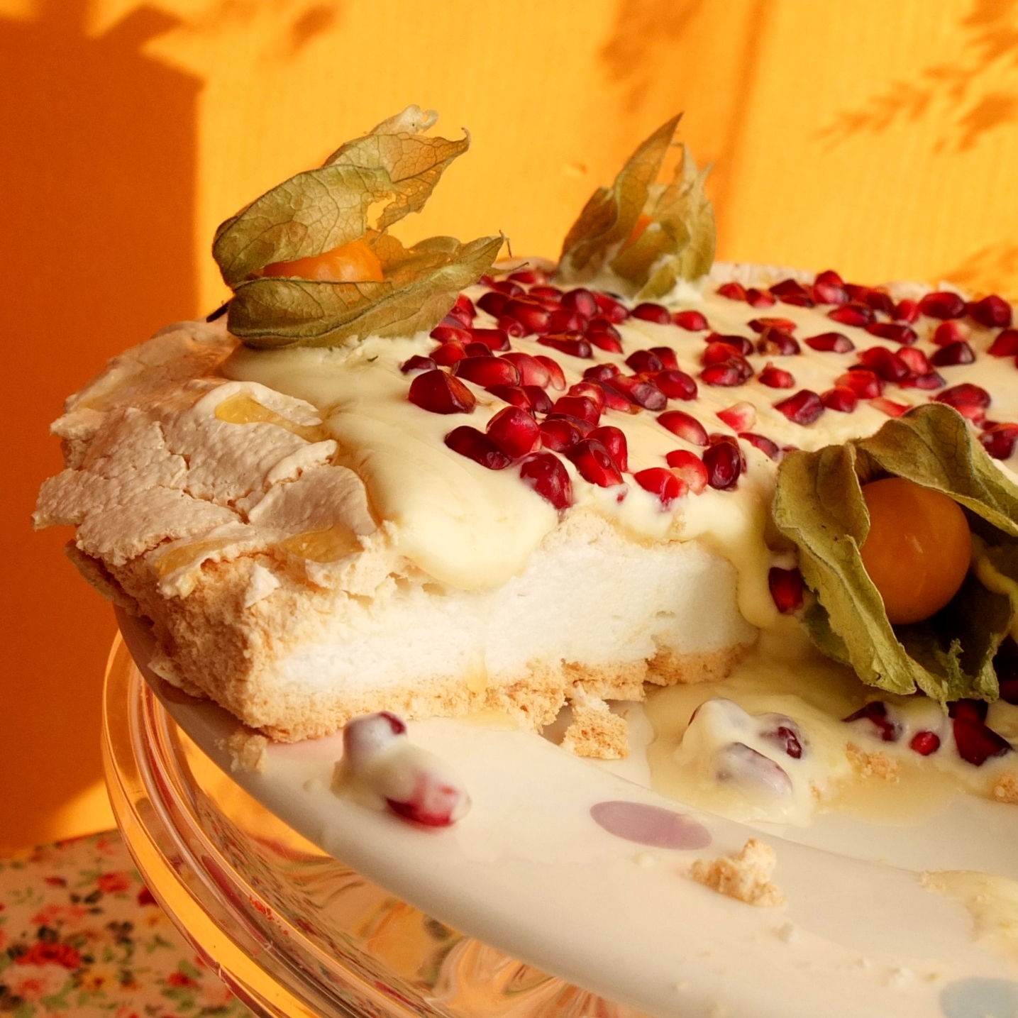 Raspberry, goats’ cheese and fig pavlova topping illustrated recipe
