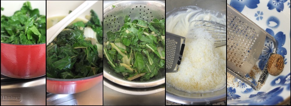 - 600ag/21oz Swiss chard leaves (with some of the stem, chopped into pieces) – I bought 2 of those plastic bags filled with ready-cut leaves in the supermarket. Optional: 300g chard with 300g spinach leaves or 600g spinach.