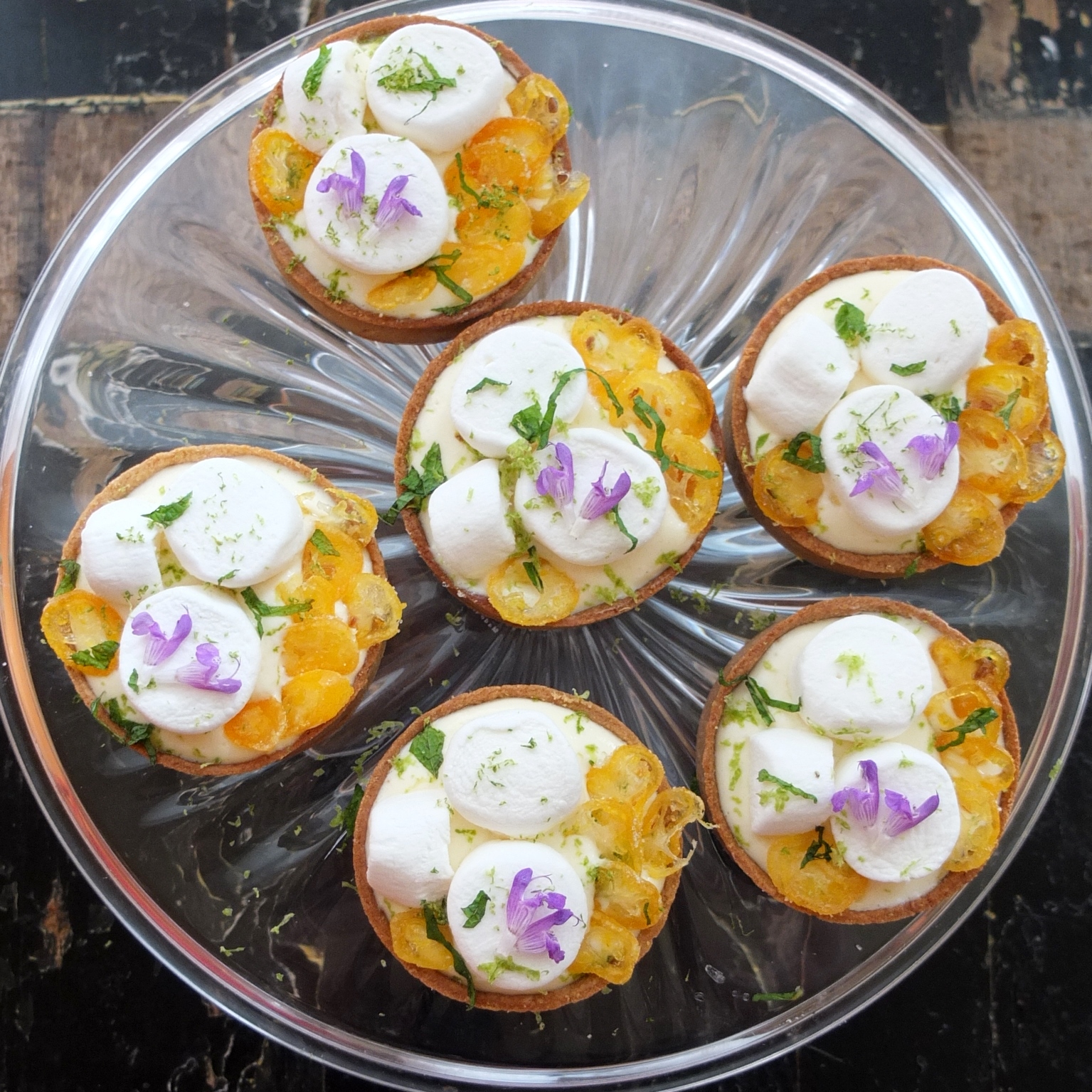 - 10-12 candied kumquats, about 1 to 2 per tart and thinly sliced