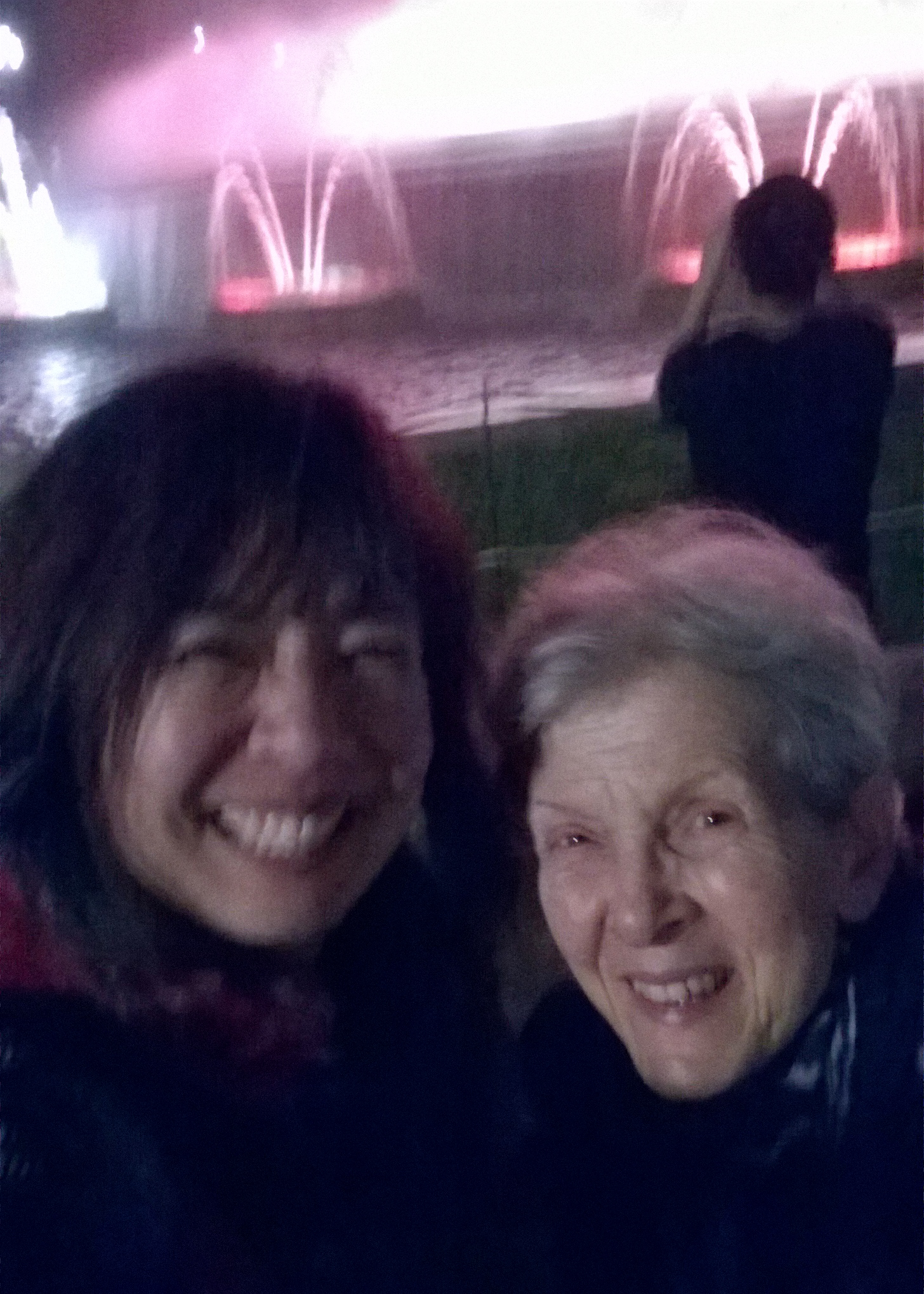 You can probably see a pattern emerging. Um… bake and eat? But we also managed to do some tourist stuff like see the magic fountains at Montjuic (which means mountain of the Jews by the way), hike from Vilanova to Sitges with a group, walk through Collserola park twice up to Mount Tibidabo and .. er… visit a few patisseries like Bubó, Takashi Ochiai, Hoffman’s and Caellum, where all the cakes are made by nuns. If you’re coming to Barcelona we recommend them all. Yum. We also managed some lovely coffee éclairs from Le Petit Gourmet around the corner (but they’re shutting down, snif) and some coca (a pastry dating from medieval times) from a bakery near my work. But for now I’ll share our crazy selfie at the fountains. We’re so bad at them it cracked us up.
