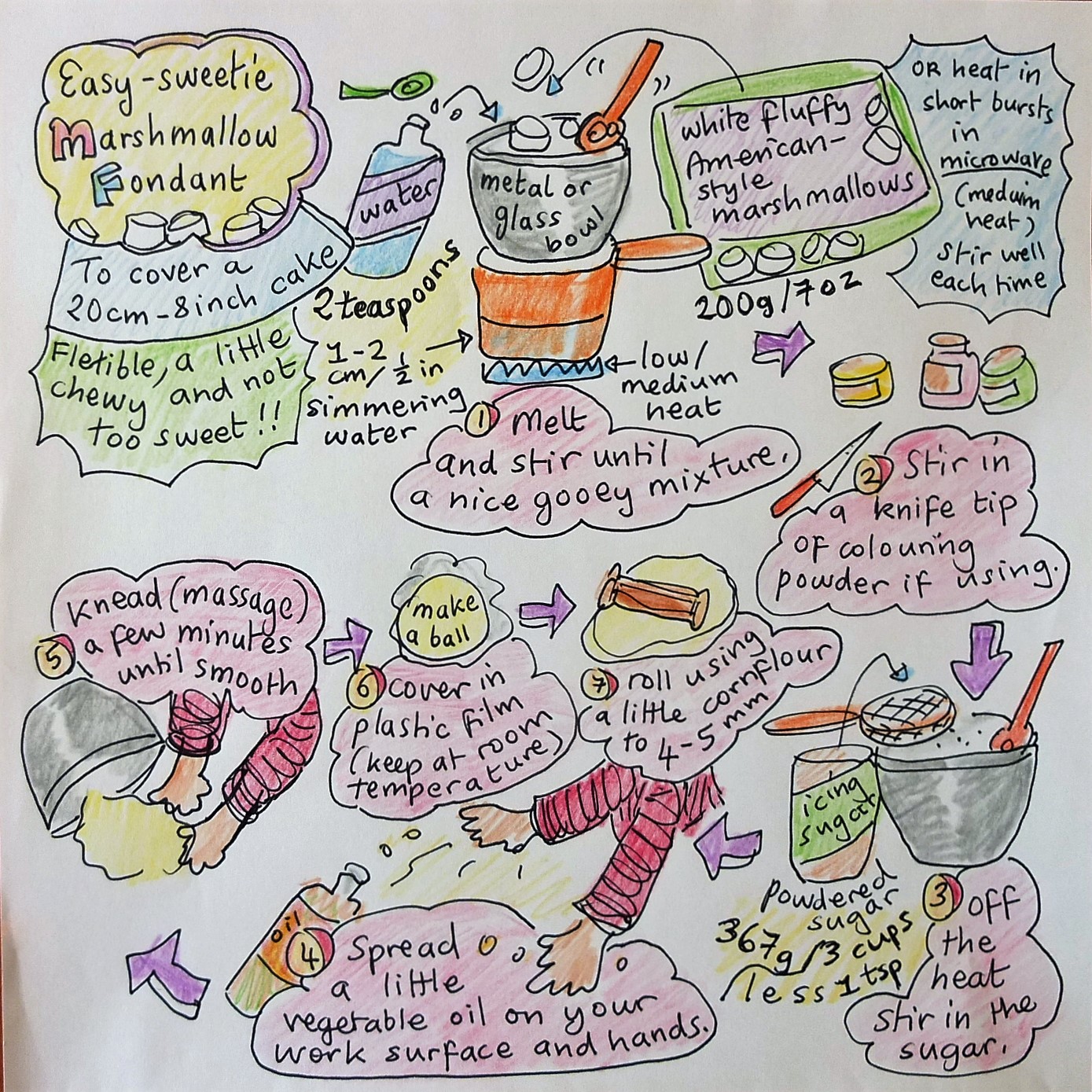 Marshmallow fondant recipe – making, covering a cake and painting on it!