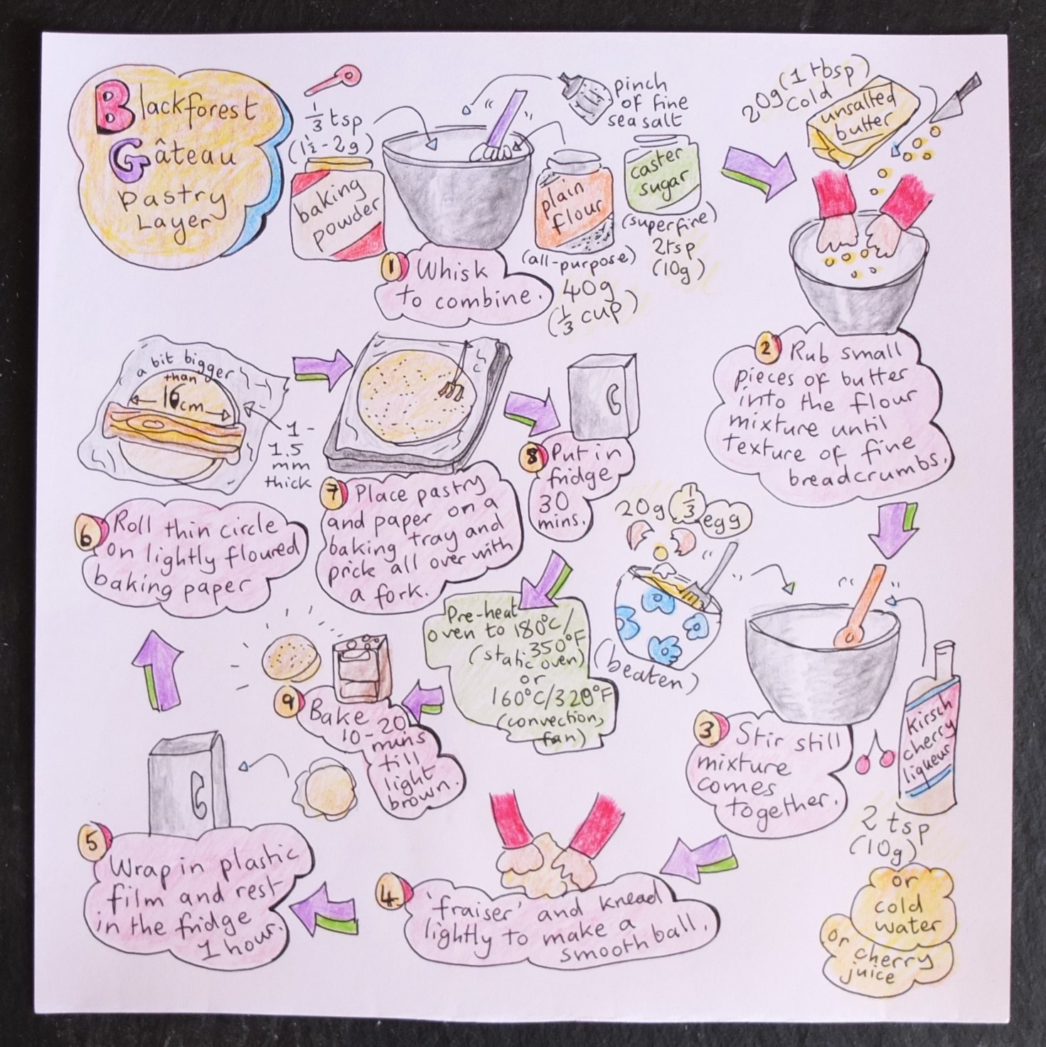 The kirsch pastry layer was a total surprise to me but my friend explained it’s normal in the traditional version of this cake, making for a more solid base. You can leave it out but it adds a firmer sandy texture that contrasts beautifully with such a soft cake. And it’s like eating a cherry pie combined with a sponge cake! Out of this world yummy!