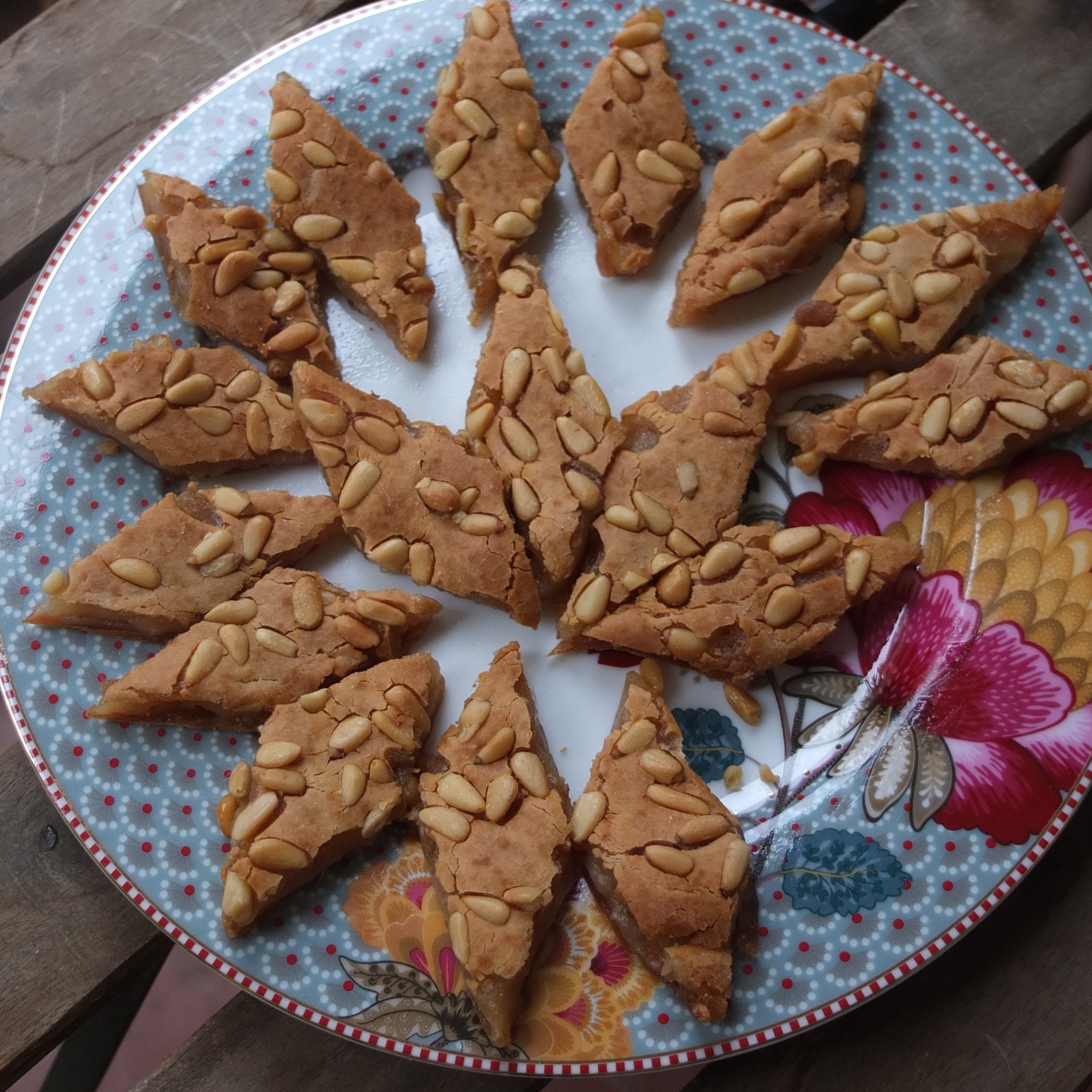 Happy Chinese New Year everyone!  Wishing you a prosperous year ahead and here to help you out is a typical Chinese treat that is said to bring luck and ‘family cohesion’ … or at least the joy of eating a surprisingly delicious treat that isn’t too sweet!  This light rice cake has a soft chewy texture similar to mochi and the smell and flavour remind me of very slightly caramelised condensed milk.  It’s made with glutinous sticky rice flour, almond milk, coconut milk, maple syrup and nut oil.  You can adapt the ingredients to your taste and instead of the typical almonds mine has pine nuts sprinkled on top, giving it a tasty lightly crunchy Catalan touch.  It’s super easy to make plus baking instead of steaming adds a level of texture with a slight skin on top.  So if you’d like some extra luck and are curious to try niangao or this new version, why not make your own pine nut sticky rice cake!  It’s naturally glutenfree with no refined sugar and vegan too!  A great start to a healthy new year! 🙂   Woof.  Sorry you know it’s the year of the dog don’t you?