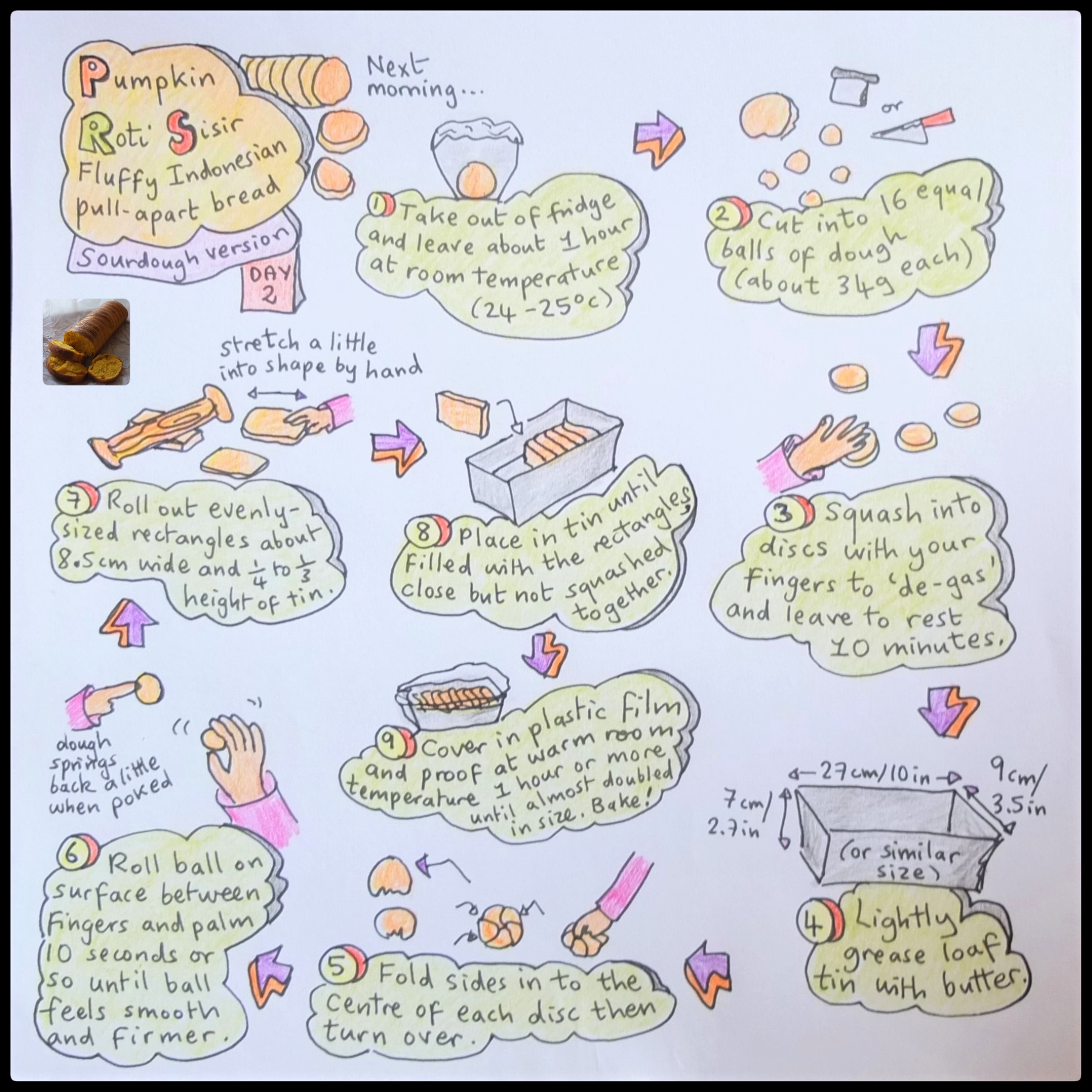 nSourdough pumpkin roti sisir illustrated recipe, shaping