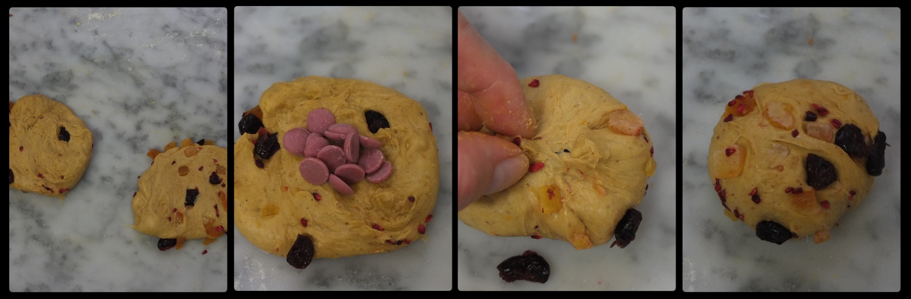 Shaping ruby chocolate hot cross buns, 1