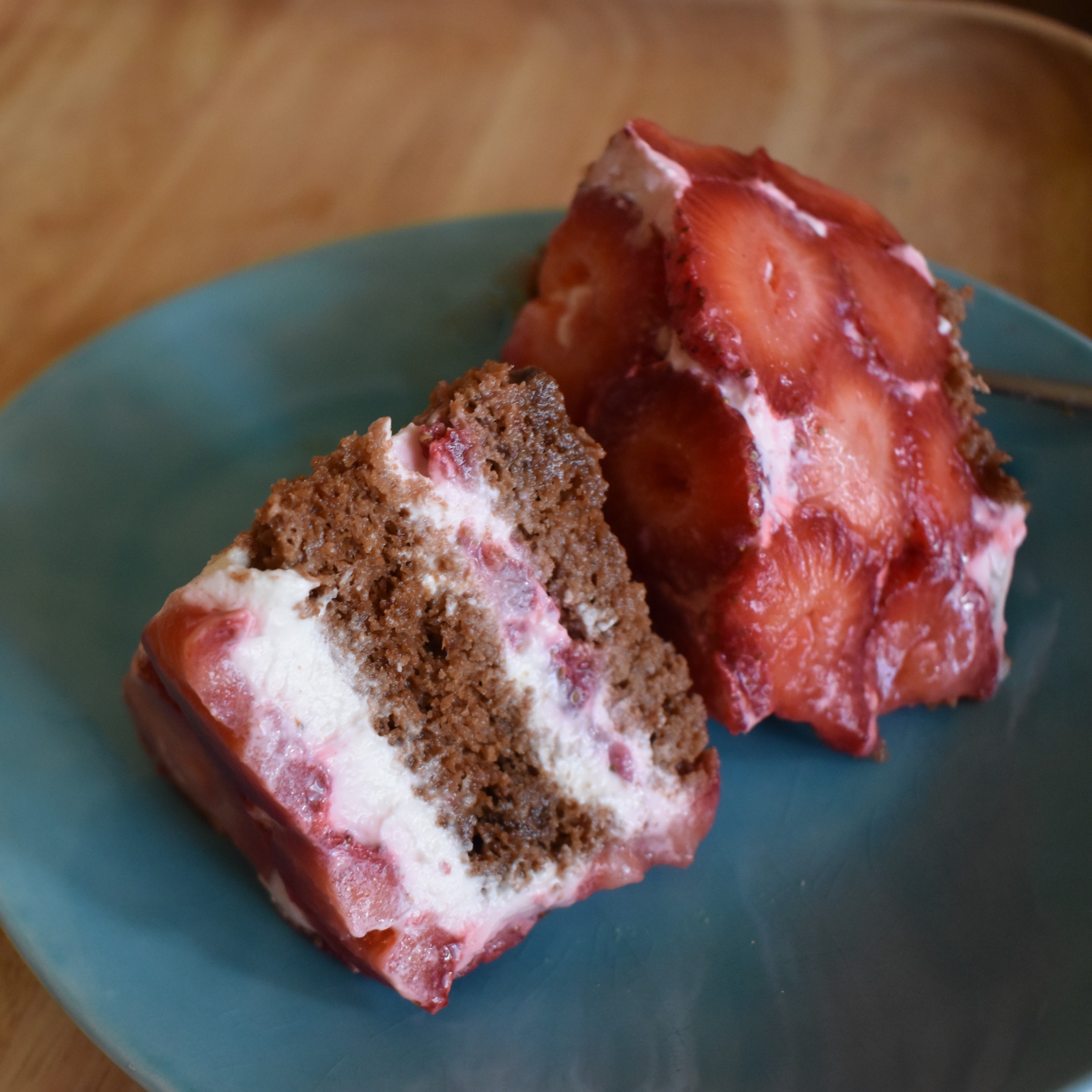 Modernist strawberry chocolate cake