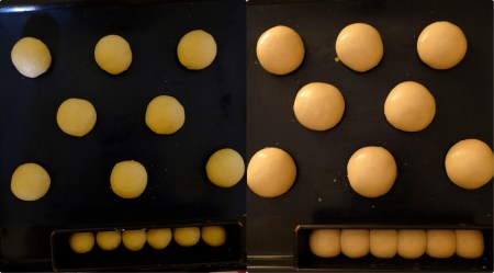 Let them proof on baking trays 3 to 5 hours or more, depending on room temperature. Around 25-28ºC/77-82ºF works well for me but a bit under or over is fine too (when colder it will take longer and in hotter weather they’ll proof faster). Cover with a large plastic bag/reusable plastic film so they don’t dry out. The brioche should increase in size 30 to 50%.