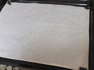 For a year I used greaseproof paper with circles drawn on them (4cm diametre circles, spaced 2cm apart). Turn the paper upside down so you don’t get pen or pencil marks transferring to the macarons! Alternatively, once you’re more confident you can start free-piping the macarons, which I started to do to save time and it was fine. It’s handy to have small kitchen magnets at each corner of the tray.