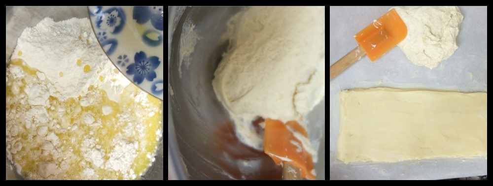 For standard puff pastry the butter is wrapped inside a détrempe (layer of flour, water and a little butter) then rolled out and folded various times to create layers. With inverted puff pastry the butter (mixed with some flour) is the outer layer and the détrempe is folded inside. Which brings us to one main disadvantage.